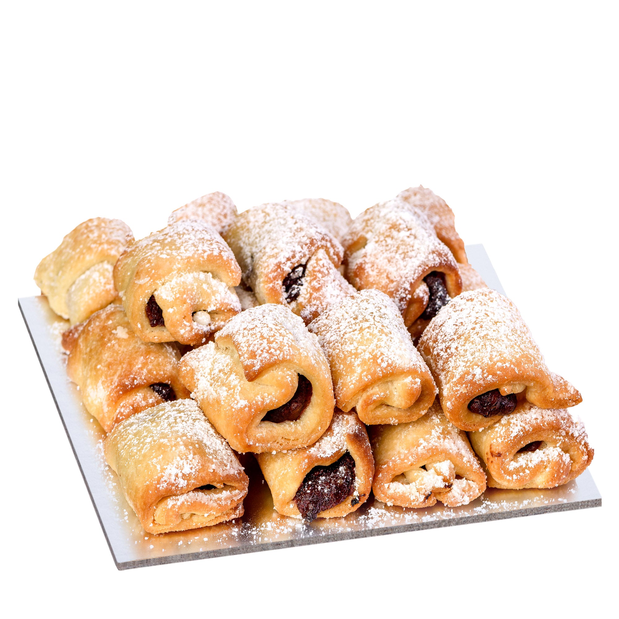 Delicate și pline de savoare, cornulețele cu gem și nucă sunt o adevărată plăcere, perfecte alături de cafea sau ceai. Fiecare cornuleț, rumenit exact cât trebuie, ascunde un interior generos de gem de fructe și nucă, oferind un gust clasic și irezistibil.