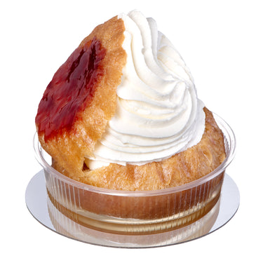 Un desert clasic și delicios, cu brioșe pufoase, însiropate cu rom, și un strat generos de frișcă. Jeleul roșu de deasupra adaugă o notă acidulată și o culoare vibrantă, care completează perfect gustul.