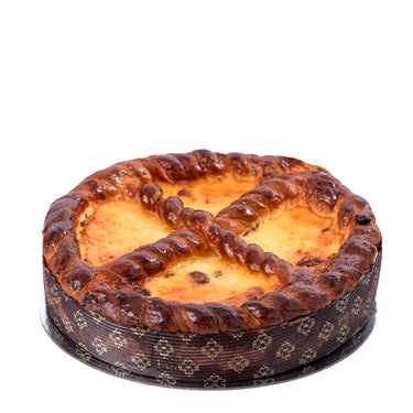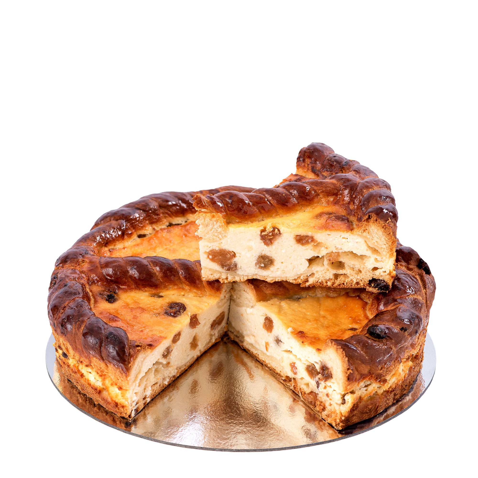 Fiecare felie de Pască este o invitație la tradiție și gust autentic. Umplutura bogată și cremoasă de brânză de vaci se completează armonios cu aluatul moale și pufos, iar stafidele adaugă o notă dulce, discretă.