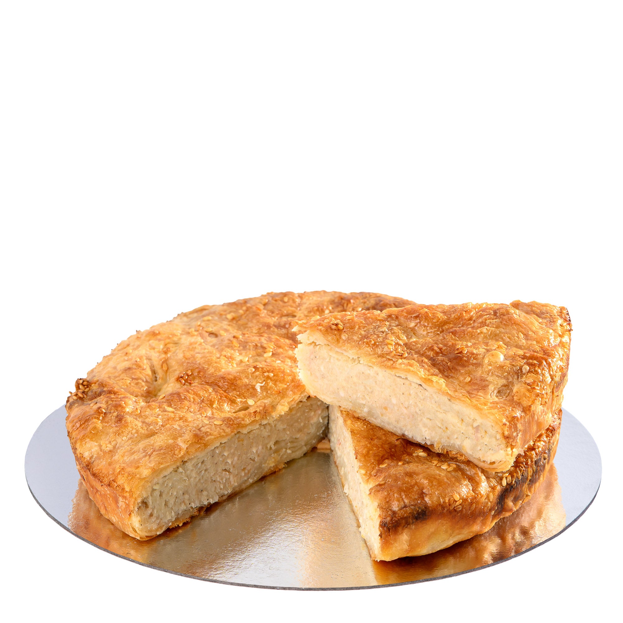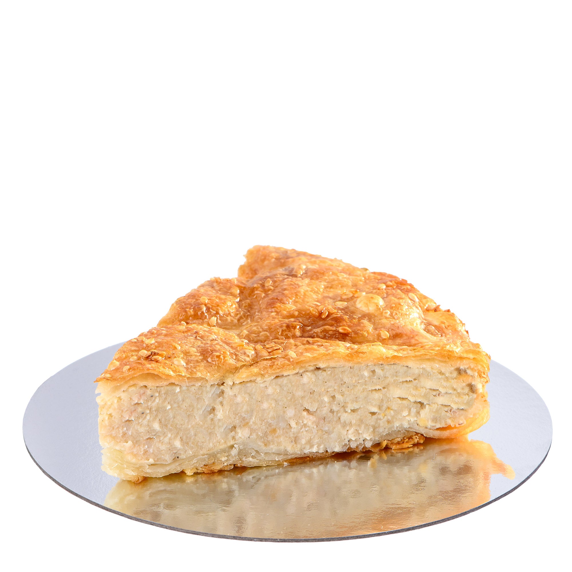 O plăcintă cu un gust delicat, umplută cu o combinație savuroasă de carne de pui și ceapă. Foaia de plăcintă este crocantă și aurie, iar umplutura cremoasă.
