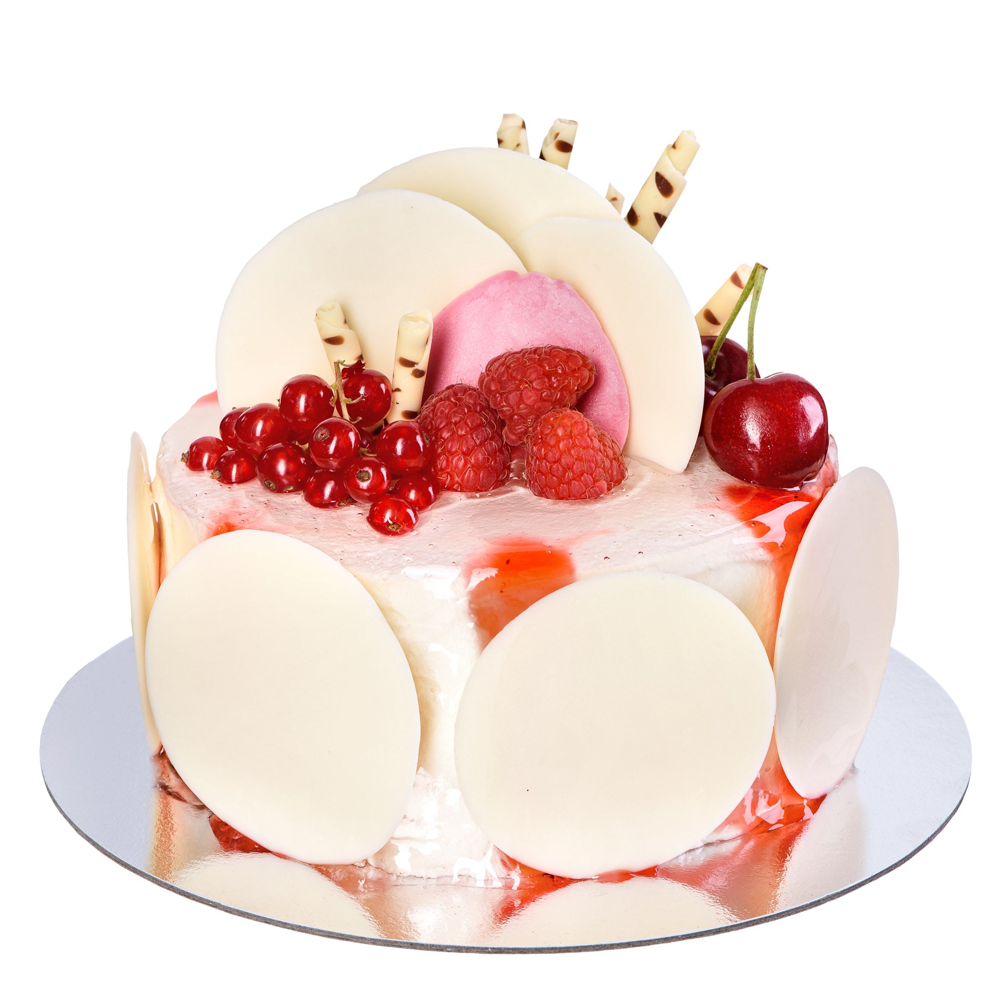 Un tort elegant, cu un blat alb însiropat, o cremă bogată de ganache de ciocolată albă și o șarlotă diplomat cremoasă. Gustul dulce și rafinat este echilibrat de notele proaspete de căpșuni și mascarpone, creând un desert perfect pentru ocazii speciale.